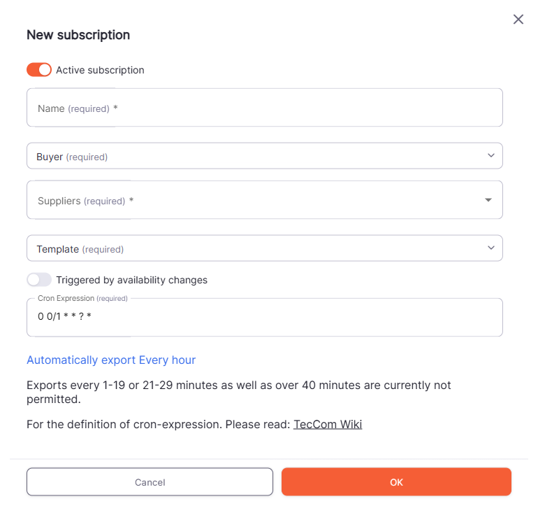 With Subscriptions you have the possibility to schedule exports for your buyer organizations.