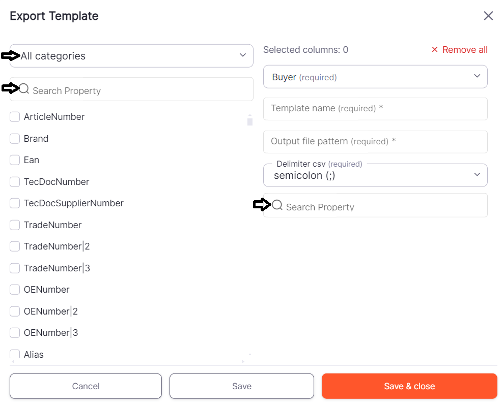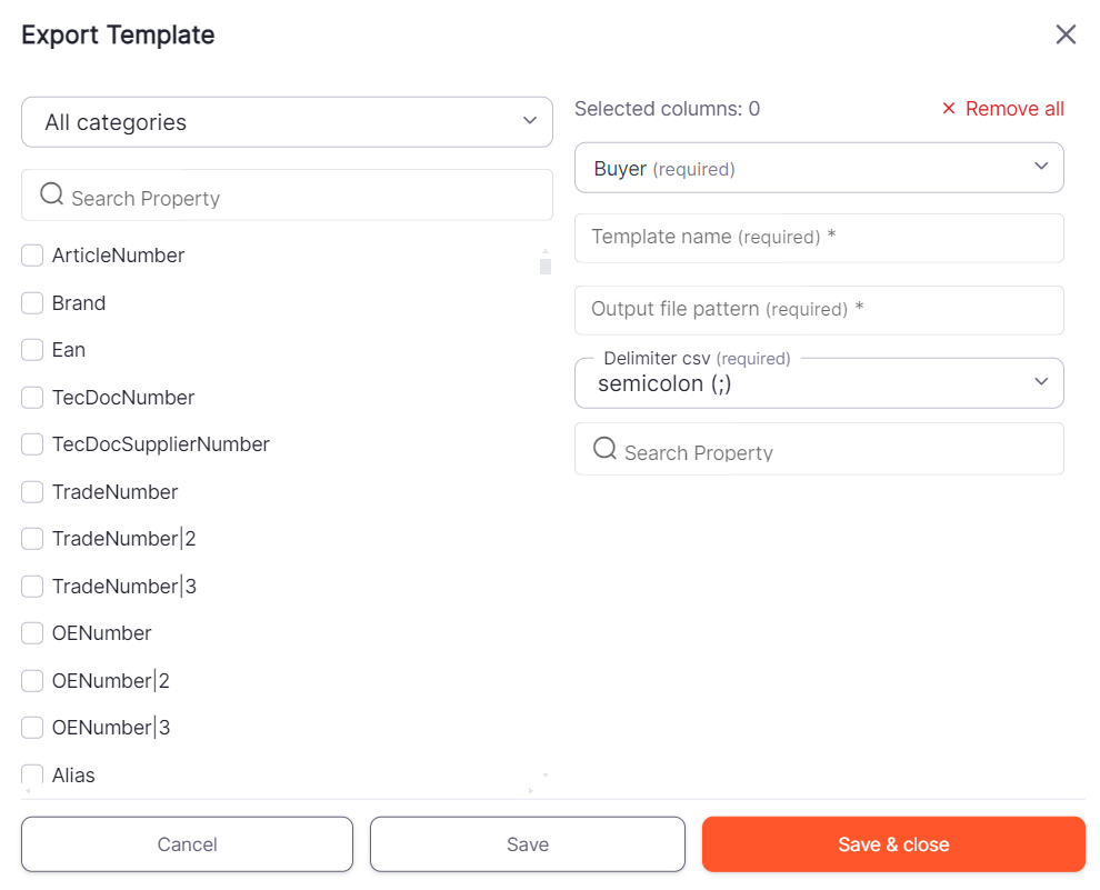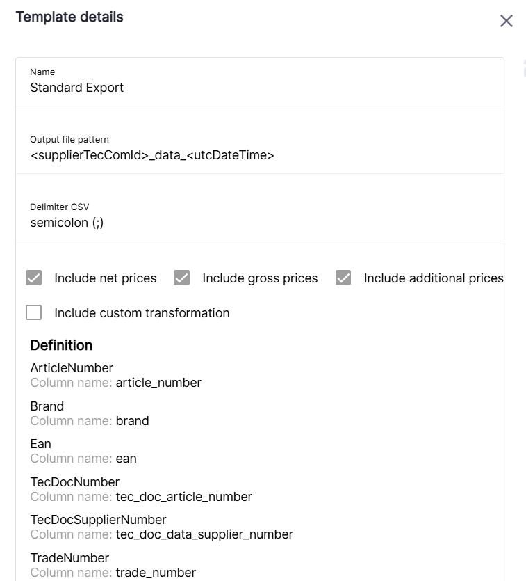 With Templates you have the possibility to define the export columns for csv exports for your buyer organizations.